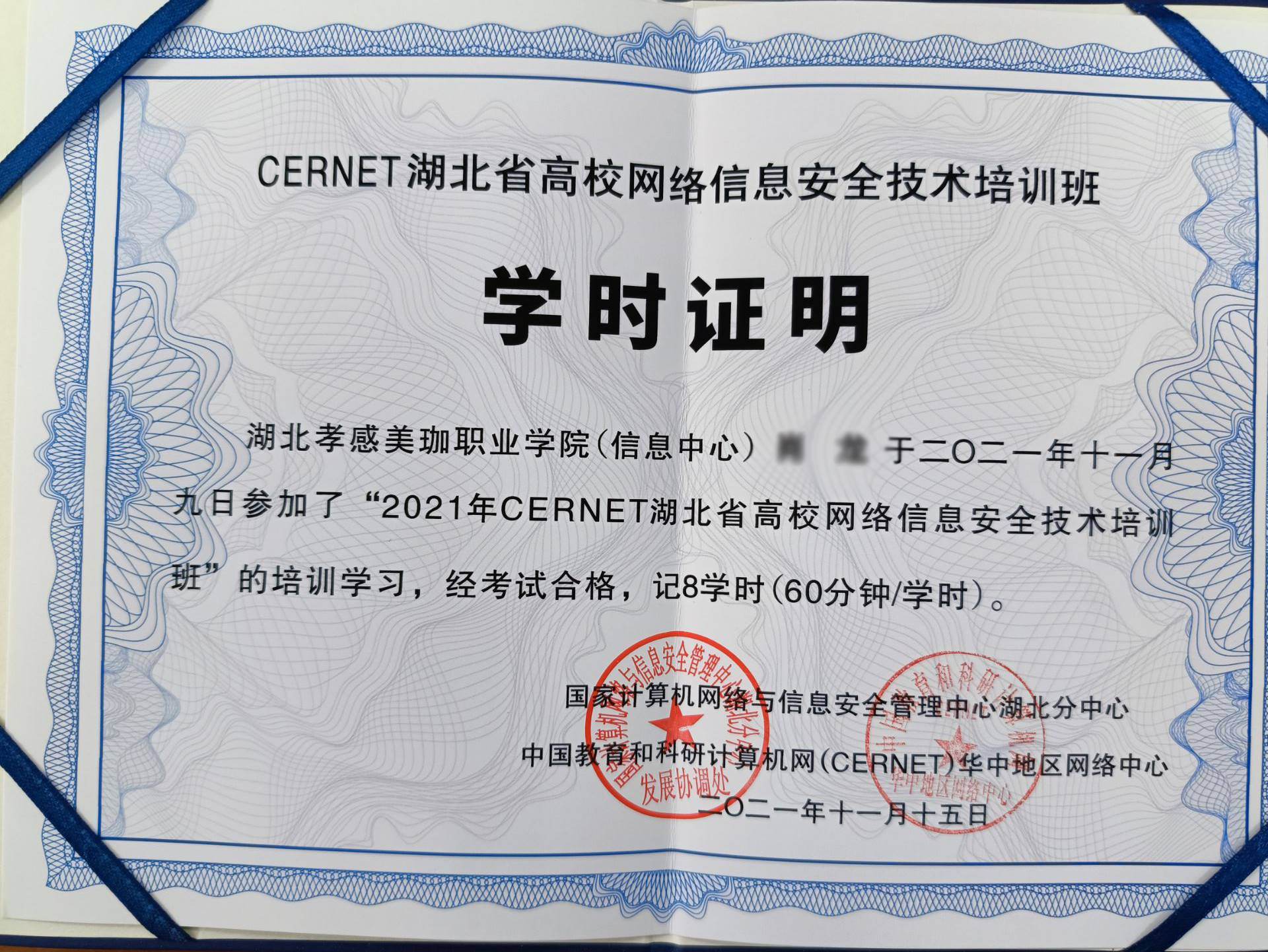 信息中心全体职员积极参加培训,并于二零二一年十一月十五日拿到培训证书。